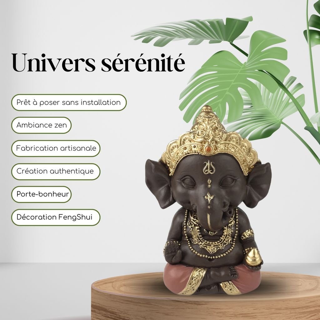 La statue Ganesh en méditation, vous pouvez la placer où vous voulez selon votre souhait. Le soin apporté à chaque élément de détail lui apporte beaucoup de cachet.